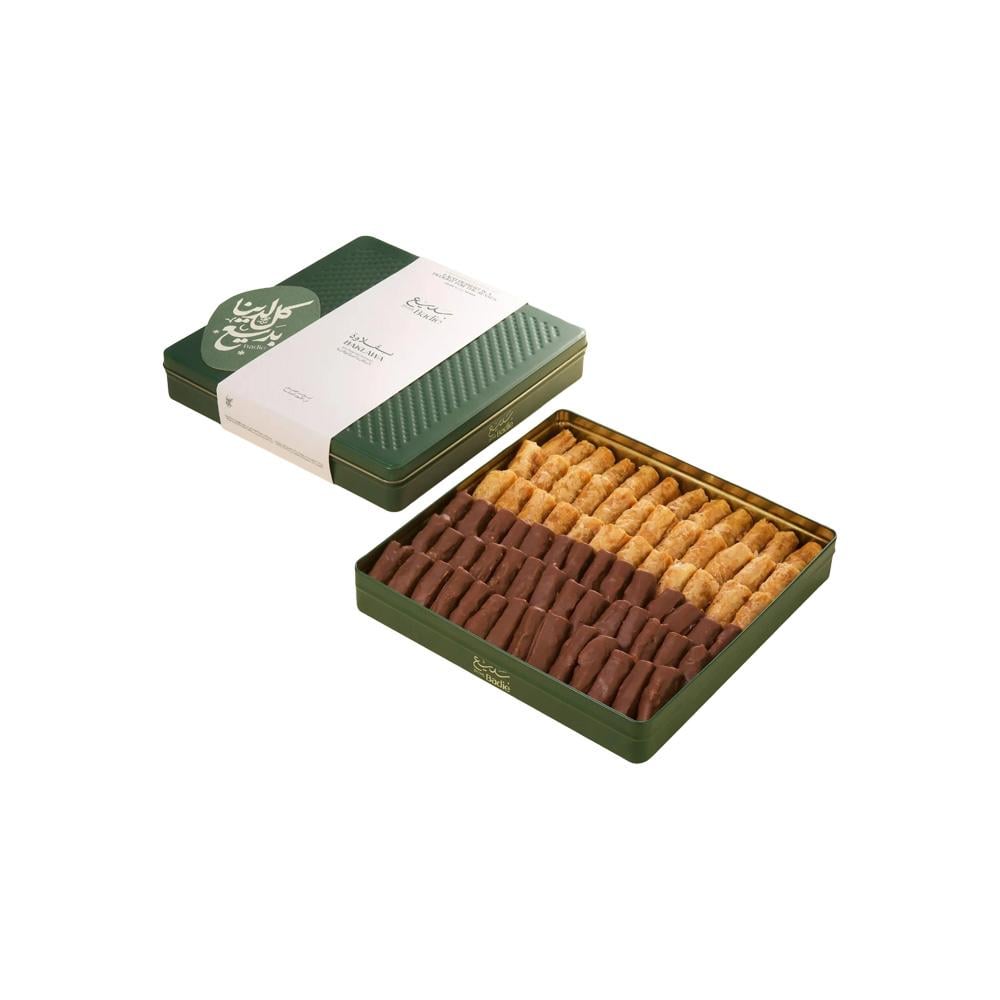 بقلاوة فاخرة مقرمشة وهشه نصفها البيكان كلاسيكي والنصف الاخر مغطى بالشوكلاتة الفاخرة