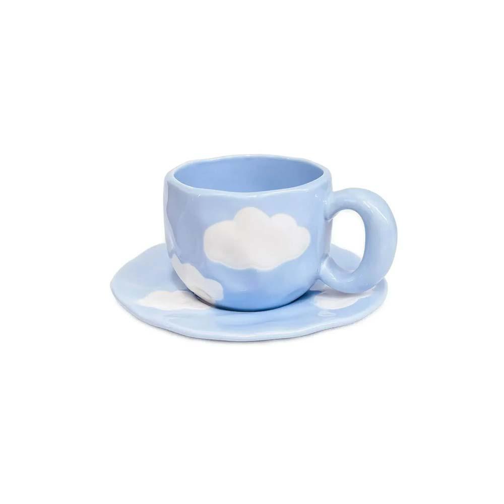 - أضف لمسة من الجمال الهادئ إلى طاولتك مع كوب سيراميك أزرق سماوي مزين بغيوم بيضاء مع صحن أنيق بسعة 250 مل.