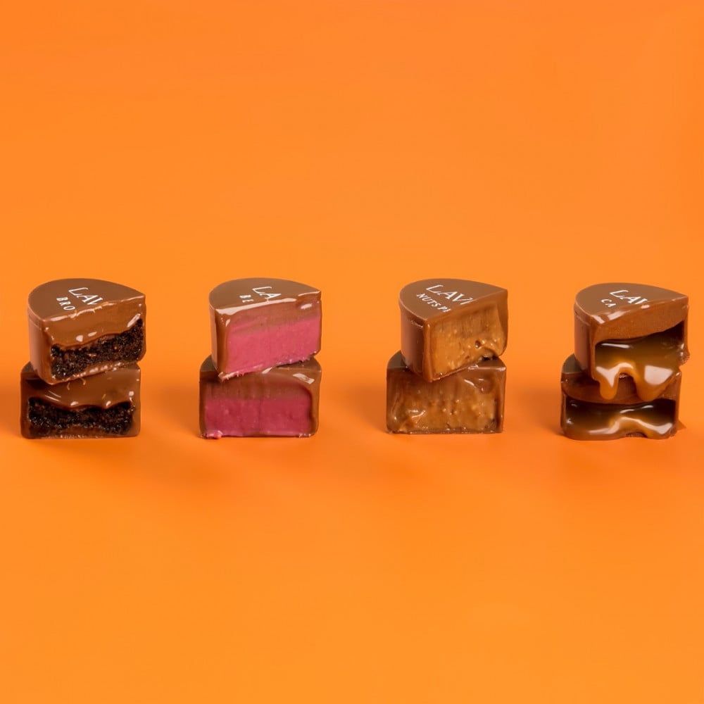 شكولا محشيه بأربع نكهات مميزه , بندق , كرنشي توت , كراميل , براونيز