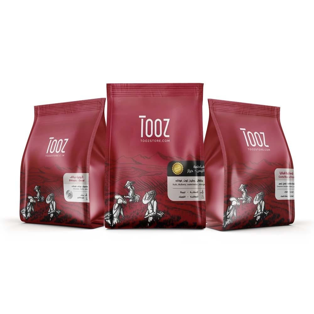 - تحتوي هذه المجموعة على ثلاث محاصيل مختارة بعناية من محمصة تووز، لتناسب كل ذائقة وكل طريقة تحضير.