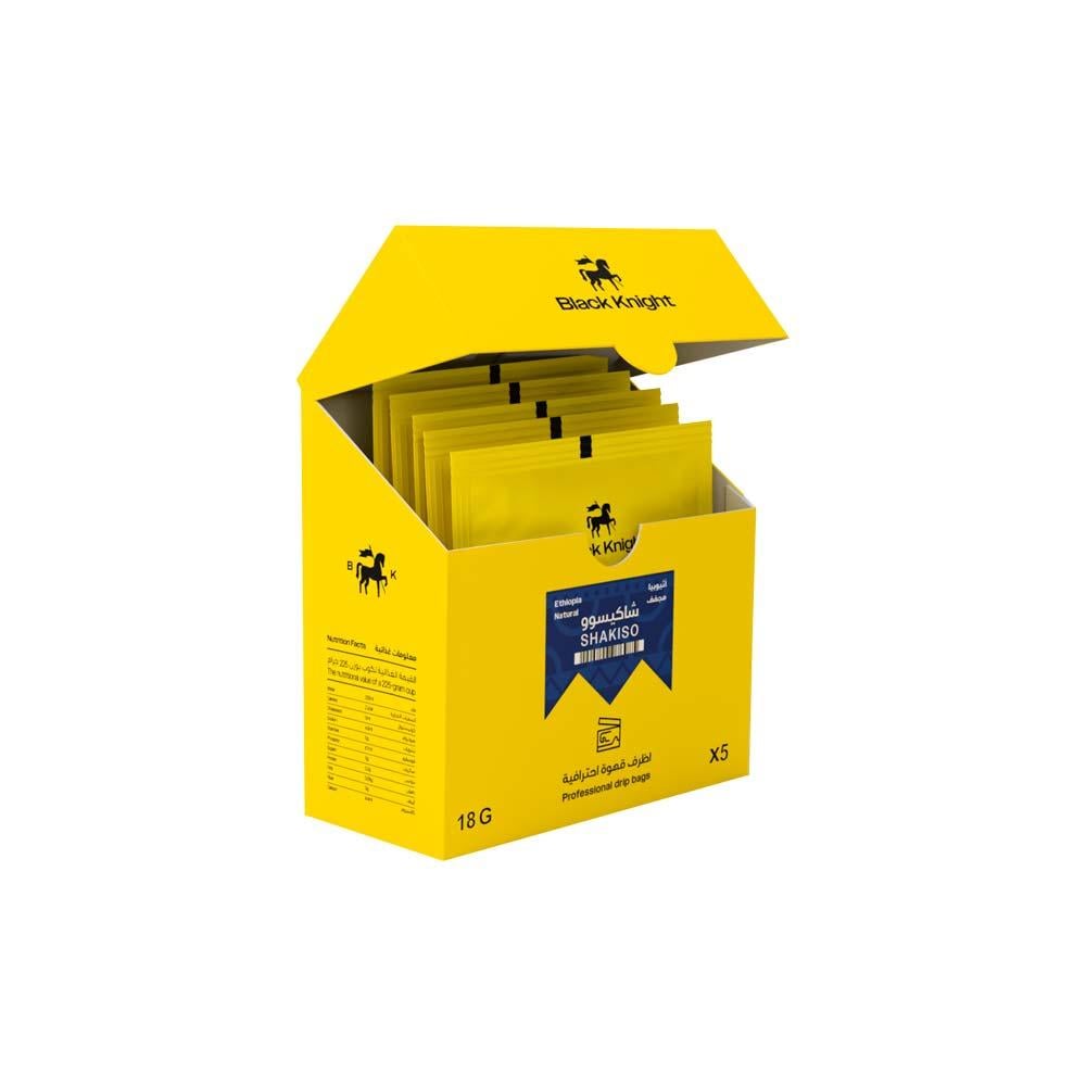 - استمتع بنكهات القهوة الإثيوبية الأصيلة مع أظرف شاكيسو من محمصة الفارس الأسود، القادمة من مرتفعات قوجي – شاكيسو، حيث تُزرع على ارتفاعات شاهقة تزيد من ثراء الطعم وتعقيد النكهة.
