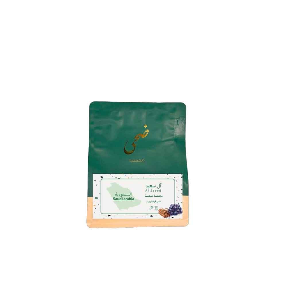يأتيكم محصول قهوة ال سعيد من محمصة ضحي بحجم 150جم وبأيحاءات العنب والقرفة والزبيب. ياتي المحصول مناسب للتحضير القهوة بالفلتر او إسبريسو احصلوا عليه الان