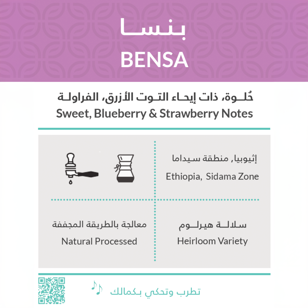 - بلد الزراعة: حبوب البن من منطقة بنسا في إثيوبيا.